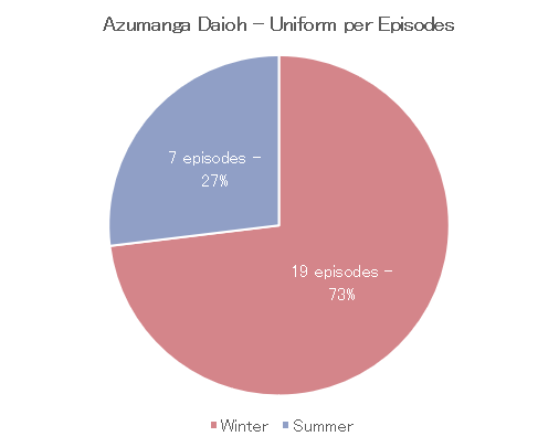 This shows that the summer uniform actually appears slightly more often in the Azumanga Daioh anime than a Japanese student would typically wear a summer uniform in real life