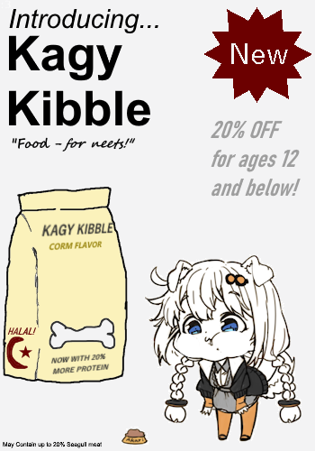 Tired of making laborious meals in the kitchen? Tired of killing yourself with instant ramen every night? Then buy KAGY KIBBLE