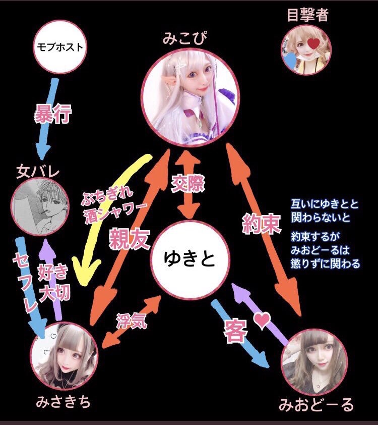 And also this relationship chart, though I have no idea if it's accurate. The general response to it seemed to be "these all look like the same person"