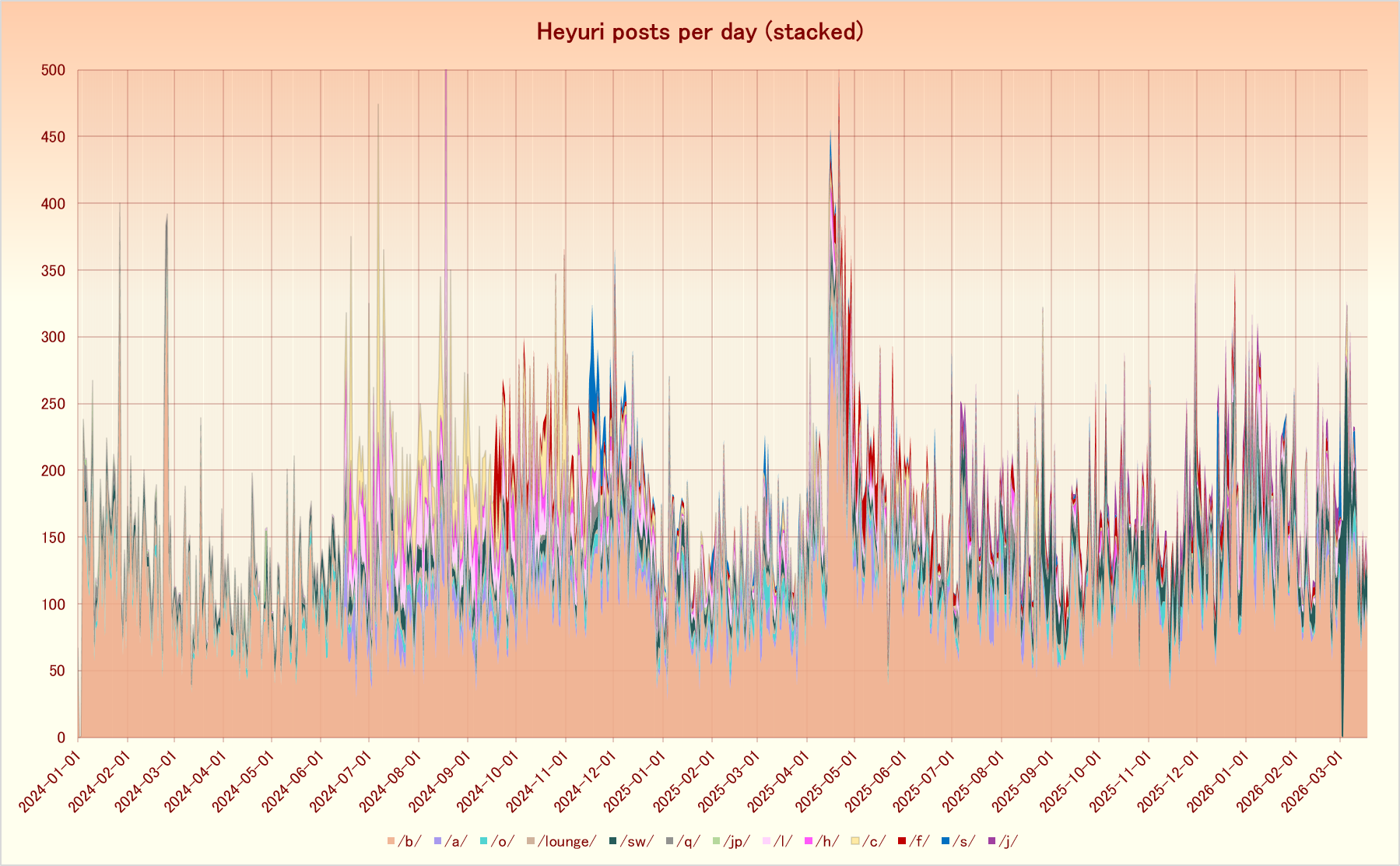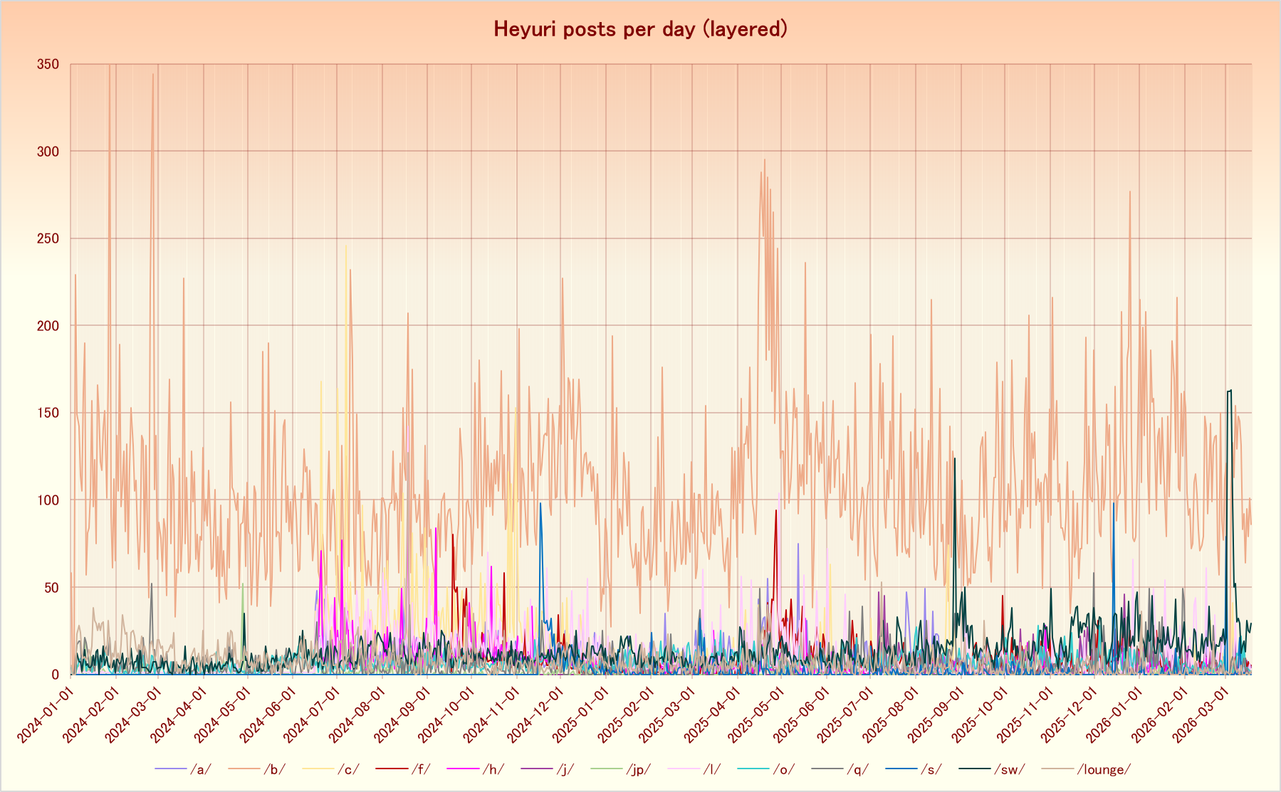 Note: there is a slight inaccuracy regarding Strange World during the "maintenance" period, since those logs are currently b0rked. The post count difference between the currently-available posts has been averaged over that period instead (will be corrected later)